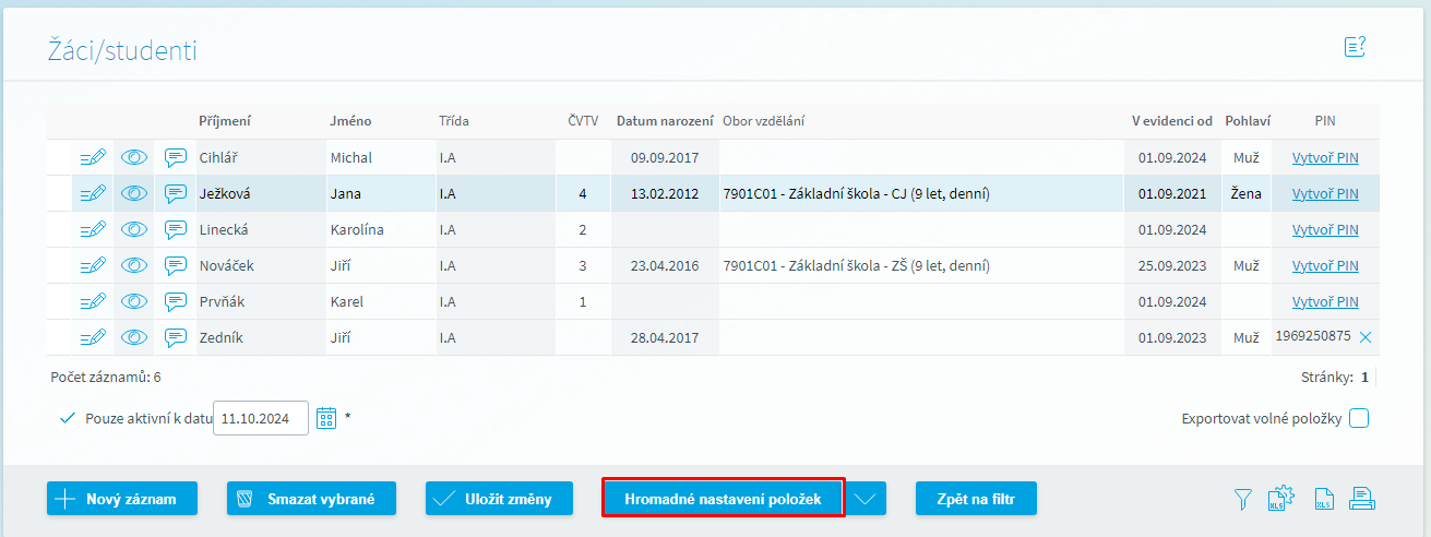 4. Efektivní správa údajů o žácích pomocí hromadného nastavení